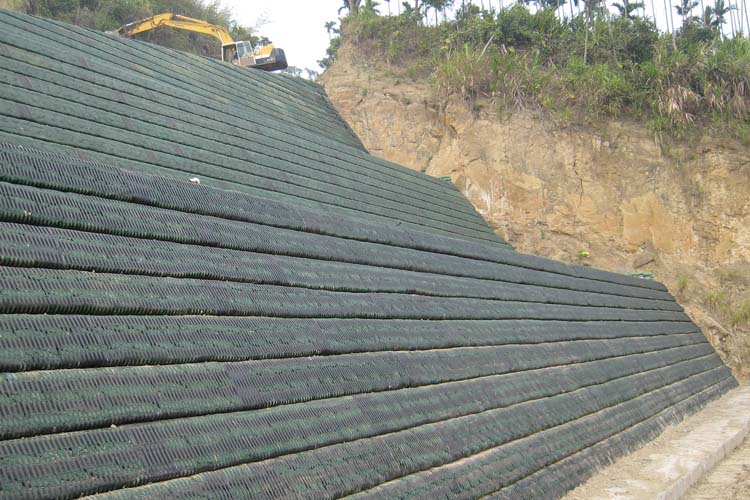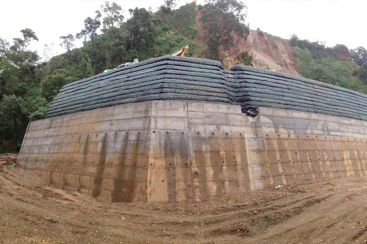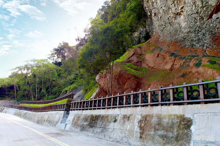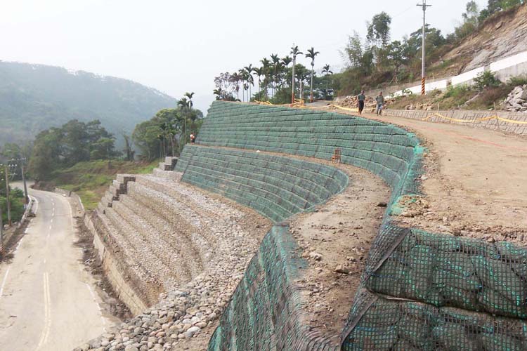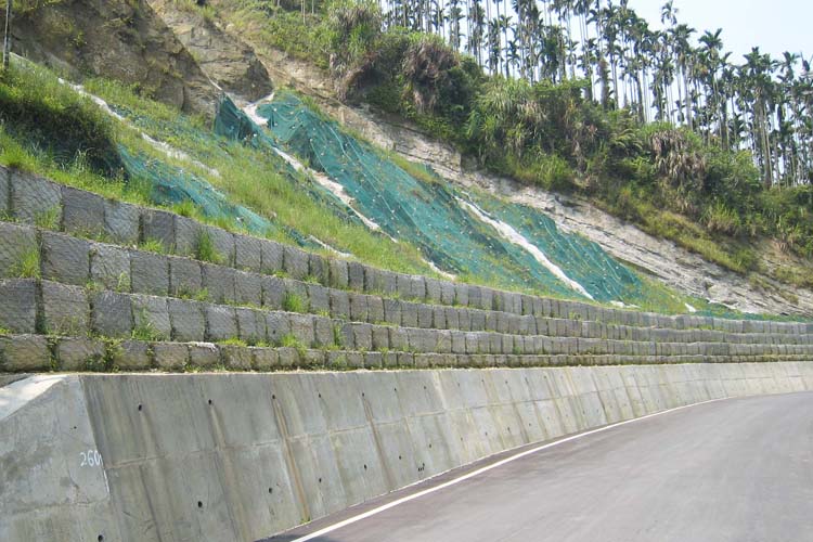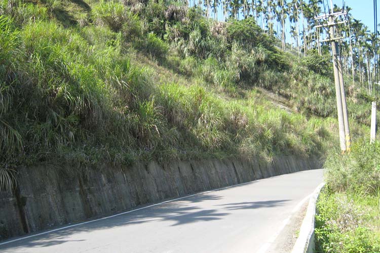 本工程位於中47線21K處上邊坡,由於上邊坡土質鬆軟表土裸露,豪雨過後落石不斷,危害用路人行車安全,因此採用加勁擋土牆,加強上邊坡表土裸露處植生護坡,藉此改善該路段行車安全。