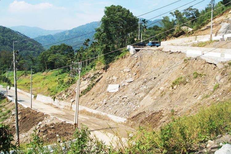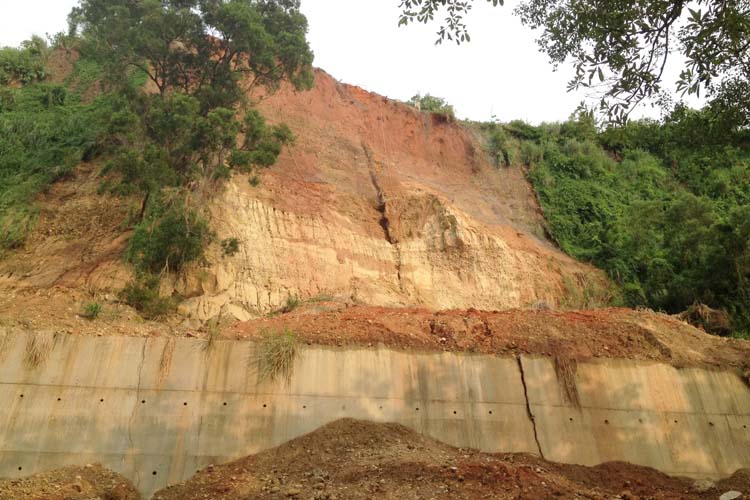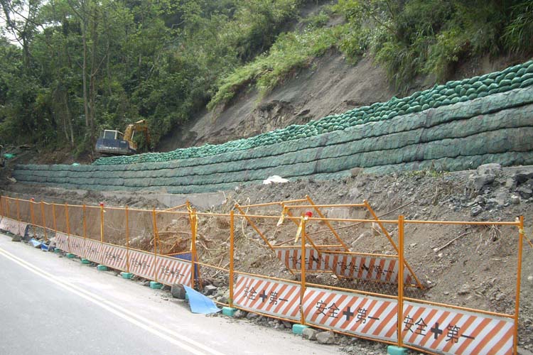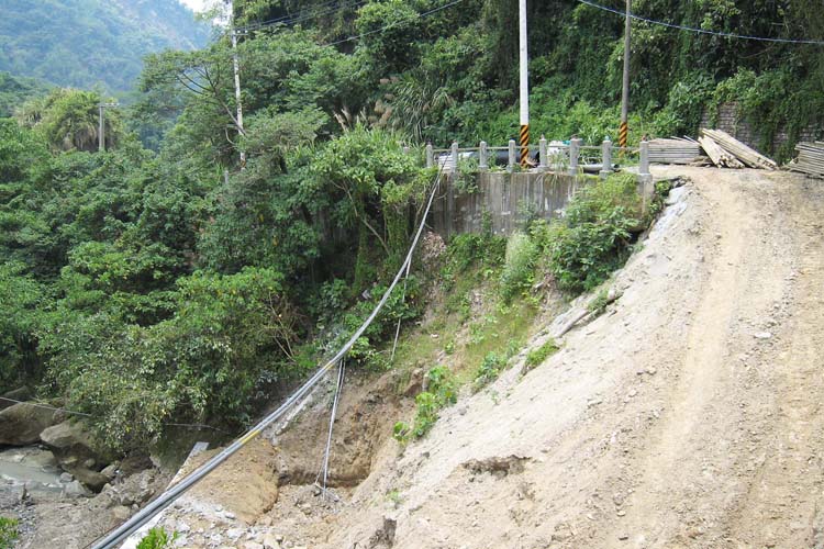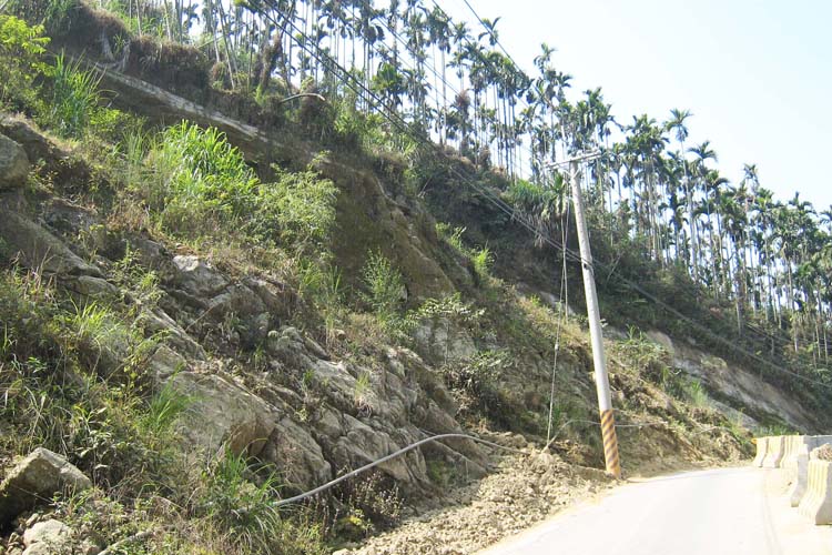 本案由於颱風豪雨造成道路下邊坡崩塌,坡壞深度約達20m高。