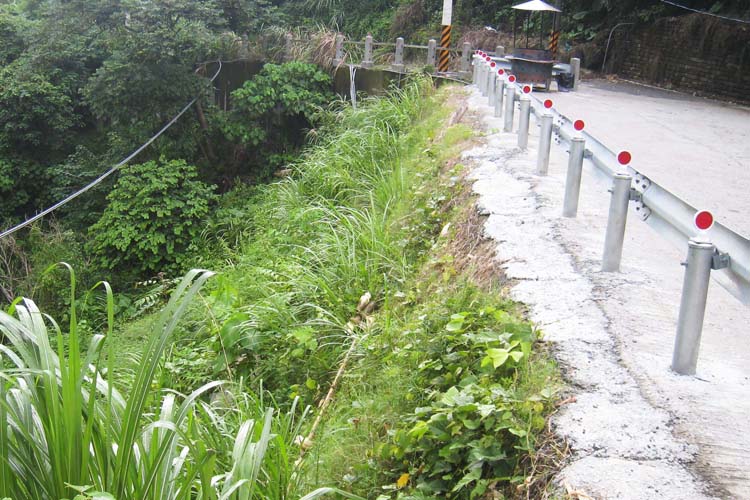 本工區位於台南市白河區關子嶺,由於基地位於溪流攻擊面,造成原有混凝土擋土牆基腳處沖刷造成掏空,導致擋土牆傾倒破壞、道路路基流失。